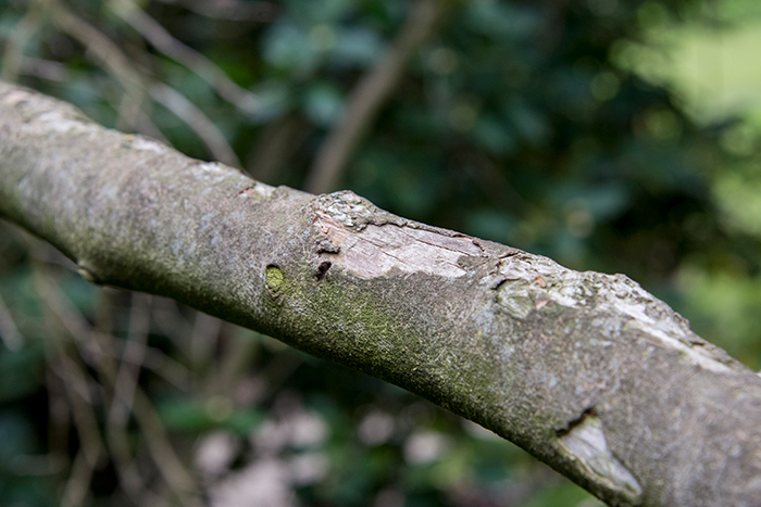 With the loss of several large oaks that had provided shade, the branches of C. japonica ‘Gigantea’ became burned by the sun. Photo by Kate Lain.