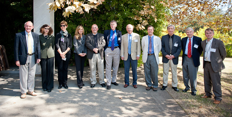 Participants of the conference: Richard Carwardine, Joan Waugh, Alice Fahs, Caroline Janney, Brooks D. Simpson, David Blight, Ronald C. White Jr., Stephen Cushman, Gary W. Gallagher, and James McPherson, with Steve Hindle (far right), the W. M. Keck Foundation Director of Research. (Not pictured: Brenda Stevenson). Photo by Martha Benedict.