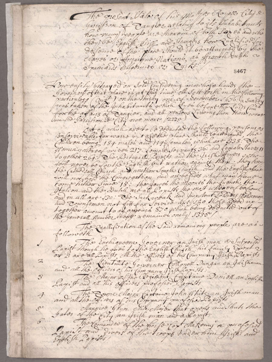 Survey of “English, Irish and Strangers” at Tangier, 1679. The Huntington Library, Art Museum, and Botanical Gardens.