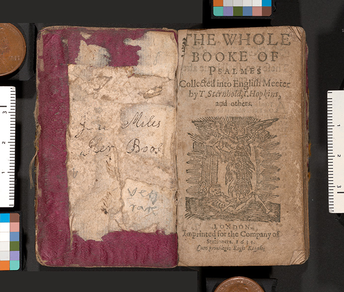 Title page of The Whole Booke of Psalmes Collected into English Meeter by T. Sternhold, J. Hopkins, and others, 1634. The title illustration shows an allegory of the triumph of religion over death. The Huntington Library, Art Collections, and Botanical Gardens.