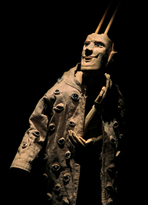 The haunting, soulful tone that underscores the John Frame exhibition "Three Fragments of a Lost Tale: Sculpture and Story by John Frame" is set in large part by the characters' eyes. Certainly the dark lighting has dramatic effect, and the sweep of soft violin and piano in the distant background provides a sense of melancholy. But it is the facial expressiveness of the 35 characters Frame has created that arguably makes the exhibition work on a deeply emotional level. And that expressiveness is centered in the eyes.
