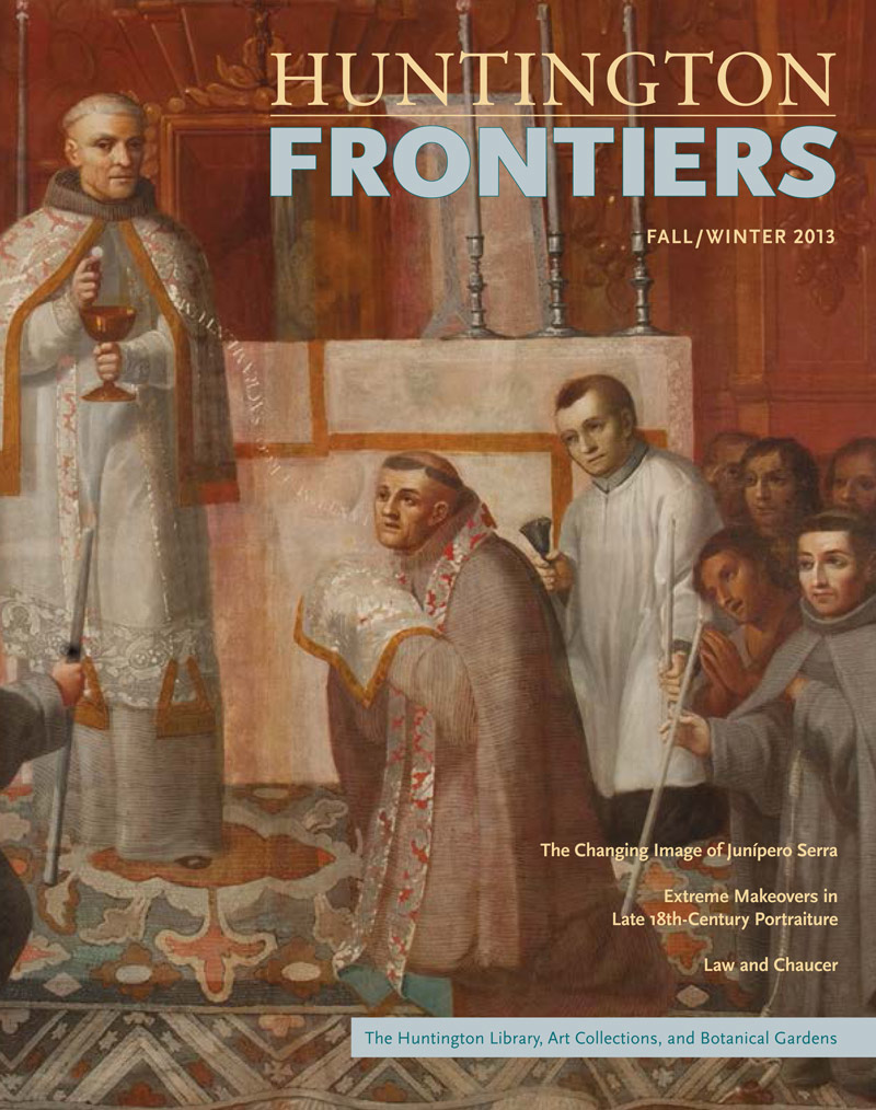 For more on Junípero Serra, you can read “Between a Rock and a Crucifix: Father Junípero Serra in His Own Day,” by Steven W. Hackel, in the most recent issue of Huntington Frontiers magazine. It is an excerpt from his new book, Junípero Serra: California’s Founding Father (Hill & Wang, 2013), available for purchase in The Huntington’s Store.