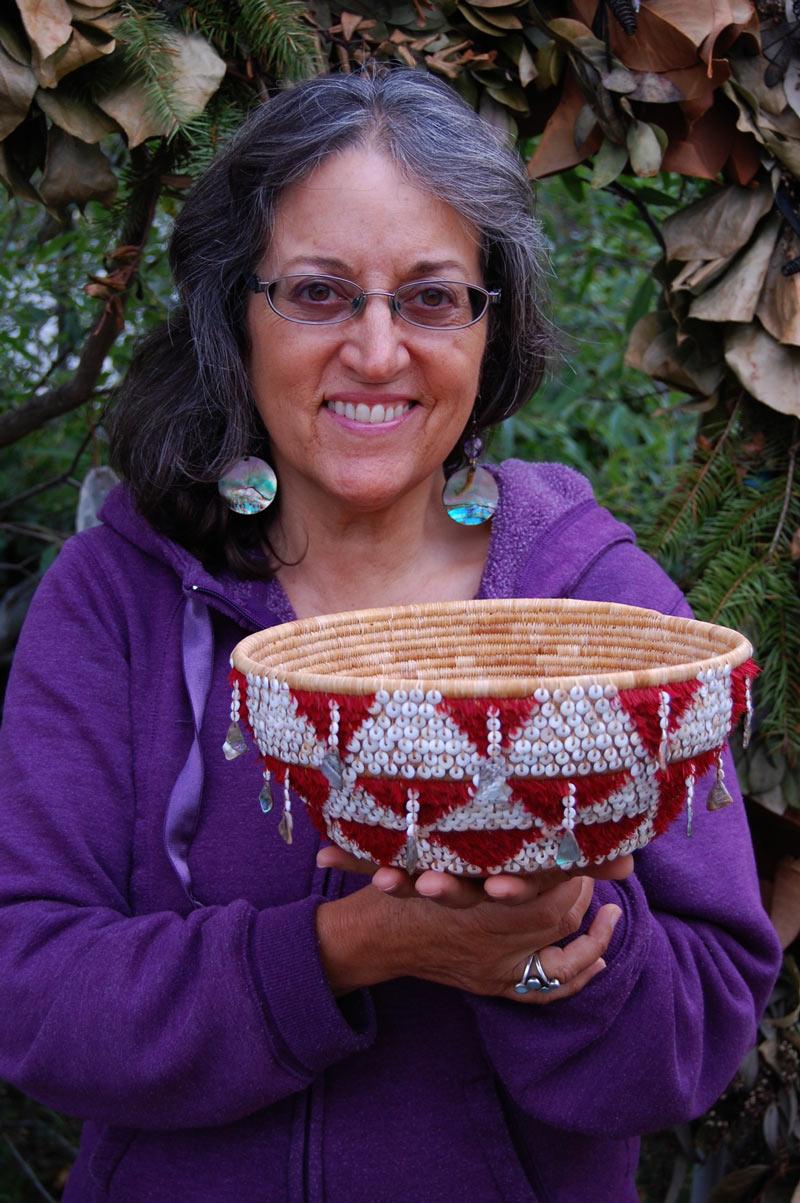 Linda Yamane with her Ohlone ceremonial basket, 2012. Courtesy of the artist, supported by a grant from the Creative Work Fund.