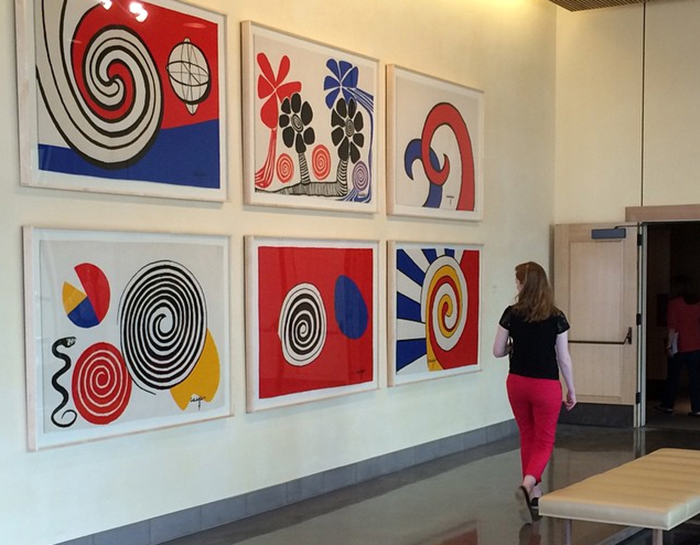 Alexander Calder, Bicentennial Tapestries, 1975, wool, each 41 x 59 in., on display in Rothenberg Hall. Gift of the Berman Bloch family. Photo by Lisa Blackburn. The Huntington Library, Art Collections, and Botanical Gardens.