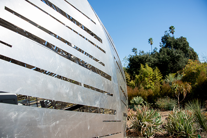 Orbit Pavilion is on view on the Celebration Lawn (across from the Celebration Garden) through Feb. 27, 2017. The Orbit Pavilion kicks off /five, a contemporary arts initiative focused on collaboration between The Huntington and five organizations over a period of five years. The aim is to engage with the Huntington’s library, art, and botanical collections in new and thought-provoking ways.
