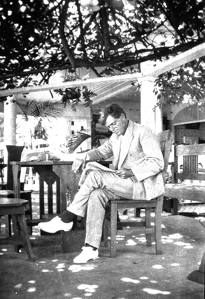 Jack London reads a newspaper to keep abreast of current events and glean ideas for new stories. The Huntington Library, Art Collections, and Botanical Gardens.