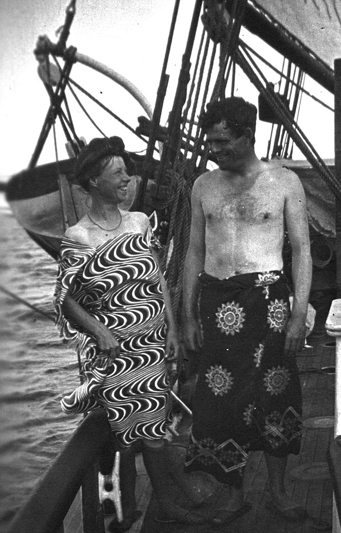 Jack London, dressed in a lava-lava, with his wife, Charmian, in the South Seas. The Huntington Library, Art Collections, and Botanical Gardens.