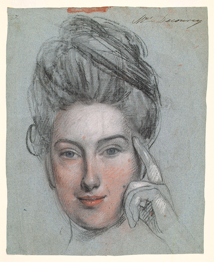 John Russell, Mrs. Decourcy, late 18th century, pastel on blue paper, Sir Bruce Ingram Collection. The Huntington Library, Art Collections, and Botanical Gardens.
