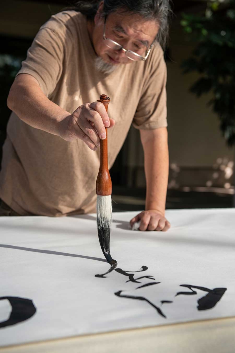 Tang Qingnian will demonstrate the art of Chinese calligraphy and discuss “An Offering to Roots” with curator Phillip E. Bloom on Sunday, July 14, at 2:30 p.m. in the Chinese Garden.
