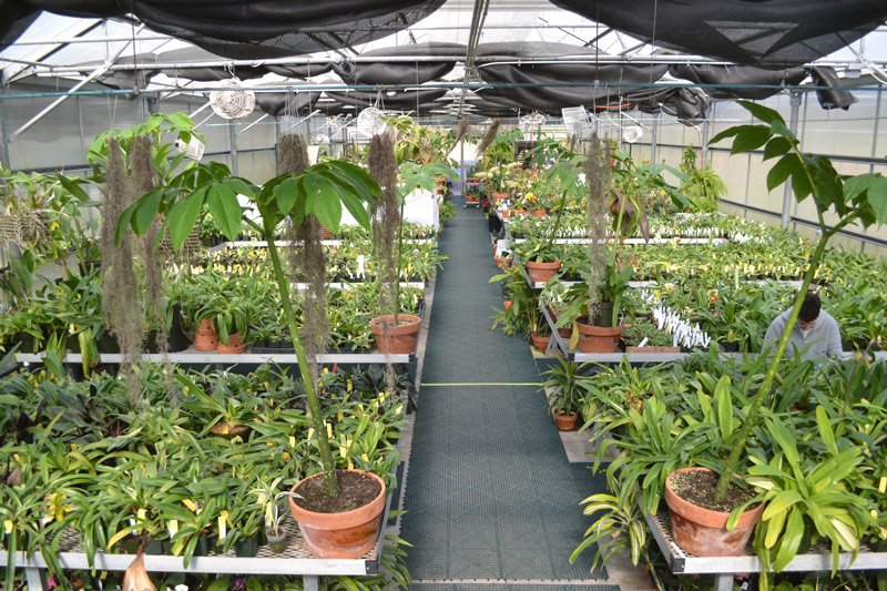 Among our many different genera (plural of genus, a term that describes a class of organisms that have common characteristics), we mainly specialize in Paphiopedilums, Cattleyas, Phalaenopsis, Cymbidiums, and Phragmipediums. More than 80 percent of the plants were donated from orchid collectors who wanted to see their collections perpetuated here at The Huntington. The most recent collection came from the estate of S. Robert Weltz, who was an orchid collector from New York City who settled in Santa Barbara, Calif., in 1984. Bob is best known for his world-renowned Paphiopedilum hybrid collection, which is highly regarded as being one of the top collections out there today.