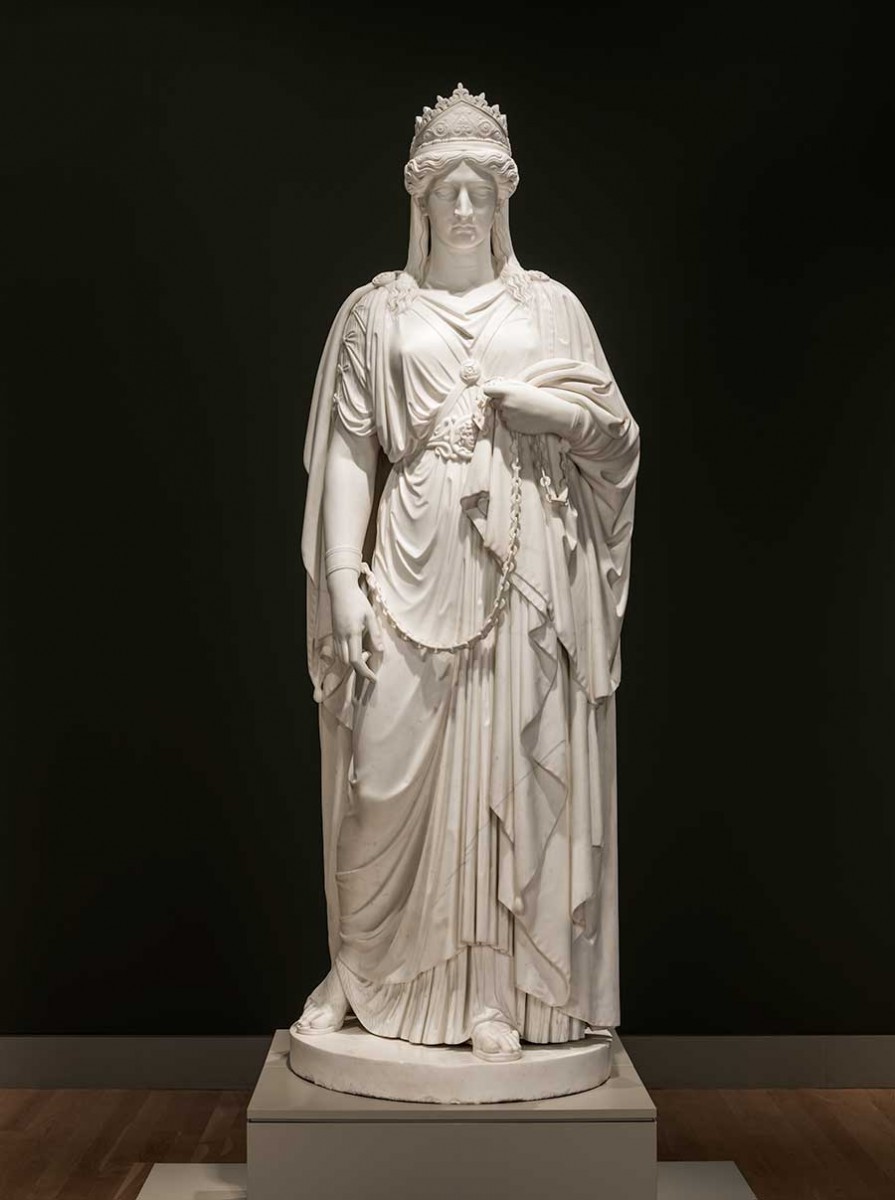 Harriet Goodhue Hosmer, Zenobia in Chains, 1859, marble, height: 82 × 27 × 33 in. (208.3 × 68.6 × 83.8 cm). Purchased with the Virginia Steele Scott Acquisition fund for American Art. The Huntington Library, Art Museum, and Botanical Gardens.