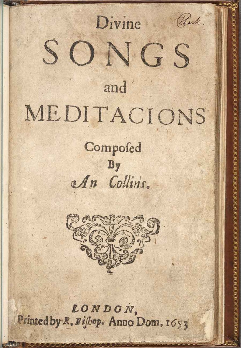 Title page of The Huntington Library’s copy of An Collins, Divine Songs and Meditacions (1653), the only copy known to still exist. The Huntington Library, Art Museum, and Botanical Gardens.