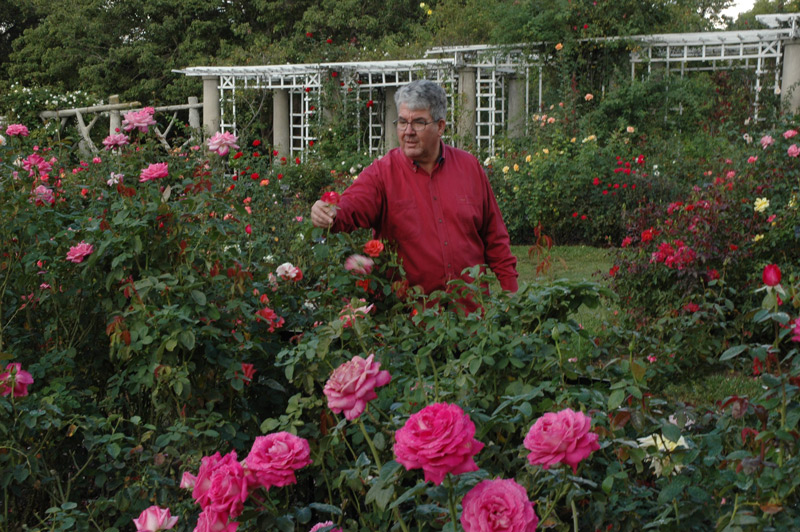 Tom Carruth at work in the Rose Garden. Photo by Lisa Blackburn.