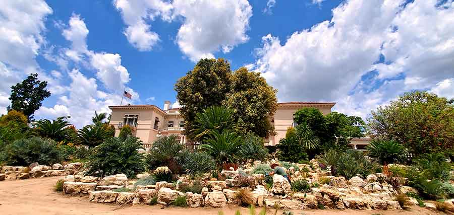 The walk is on a hill to the south of the Huntington Art Gallery terrace. A paved, winding path makes the area suitable for all visitors, including those who use wheelchairs or walkers, and benches are plentiful.