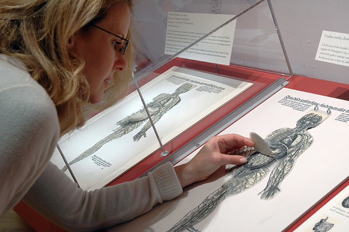 Visitors to the Library’s permanent exhibition “Beautiful Science” can see an original plate from Epitome, then touch the copy, imagining how medical students of the time peered into the body.