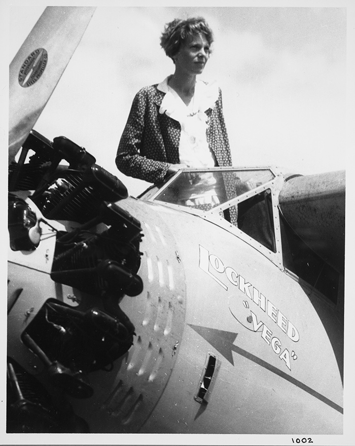 Amelia Earhart in her Lockheed Vega. Harvey Christen Collection, The Huntington Library, Art Collections, and Botanical Gardens.